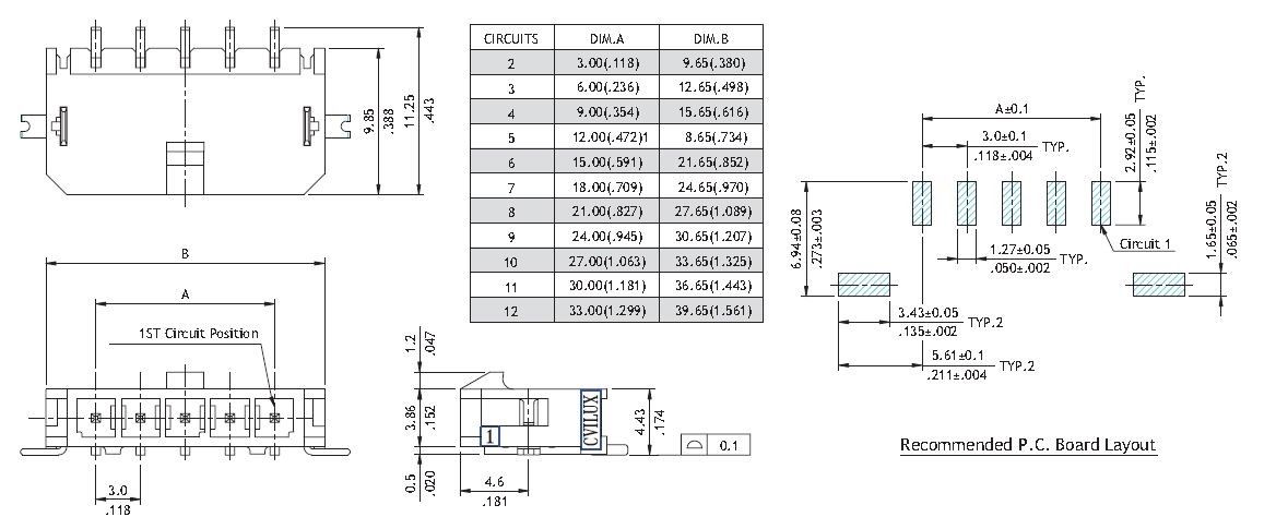 - Product path Home Elgood representationsCviluxCvilux CP35 3.0mm power 3,0mm 1x2pole smd male RA tabs Sn UL 94V-0