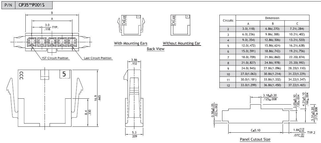 - Product path Home Elgood representationsCviluxCvilux CP35 3.0mm power 3,0mm 1x3pole male wire panel mount UL 94V-0