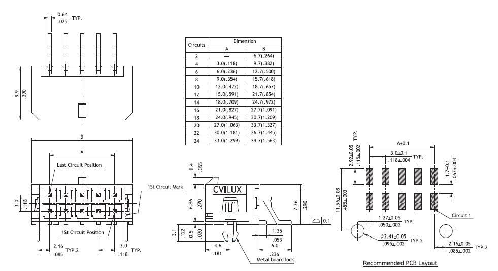 - Product path Home Elgood representationsCviluxCvilux CP35 3.0mm power 3,0mm 8pole smd male horizontal, boardlock, Sn