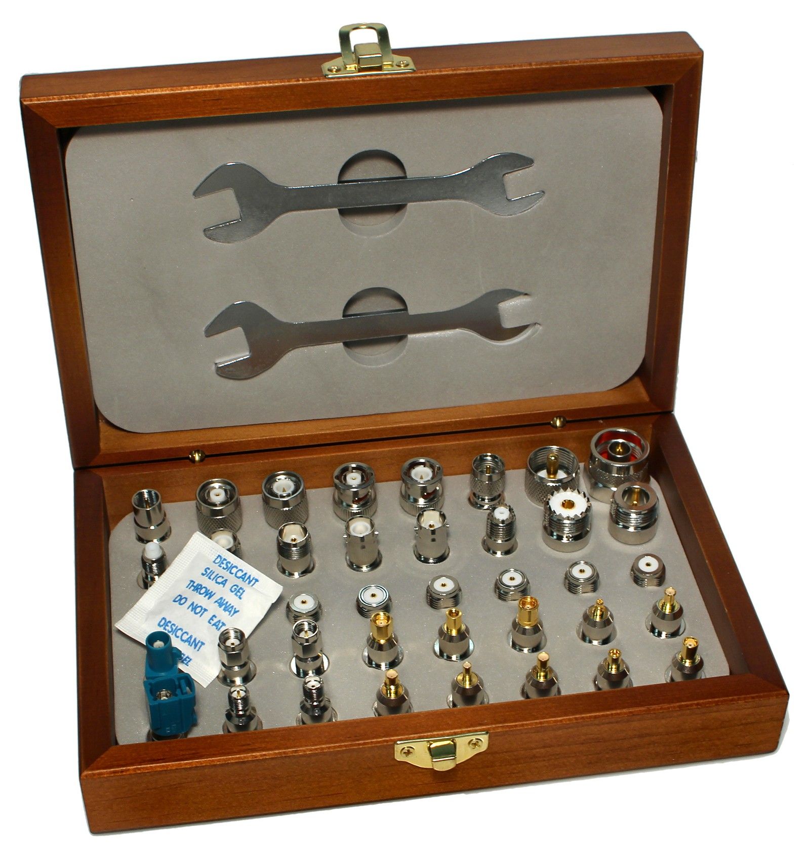 - adapters in a wooden box