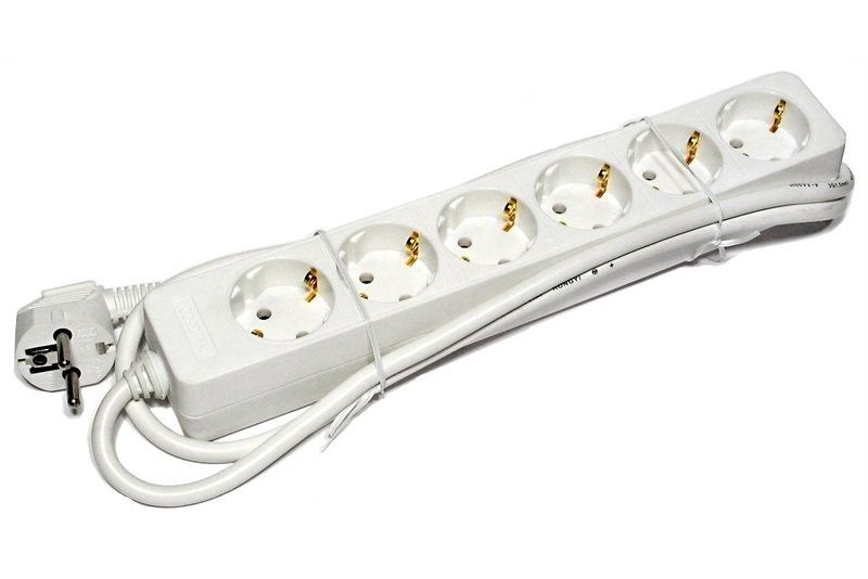 Six-socket grounded extension cord, color white. Cable length 1,5m.