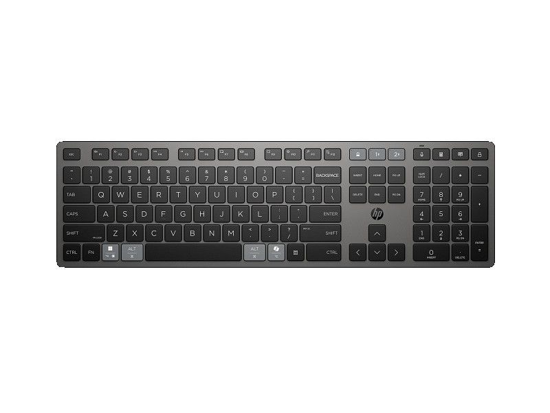 HP 725 Rechargeable Multi-Device Wireless Keyboard - Full-size wireless keyboard for multiple devices. Super-fast 3min charge, up to 2kk runtime, Bluetooth and USB-A connectivity and programmable keys make it an efficient tool.