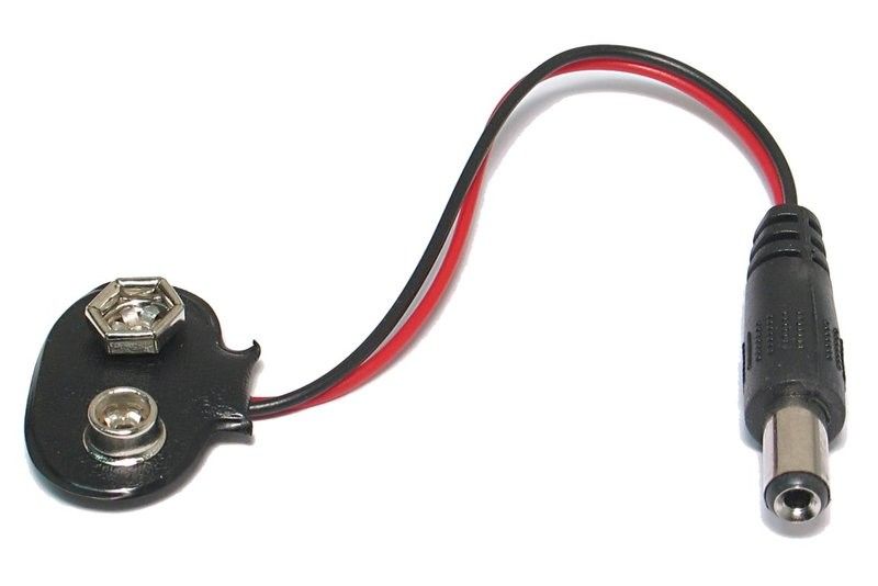 DC21 (2,1 x 5,5 mm) power connector suitable for a 9V battery on the end of a short cable. The plus is in the center of the connector. Suitable, for example, for use with an Arduino Uno, provided the application's power consumption is not high.