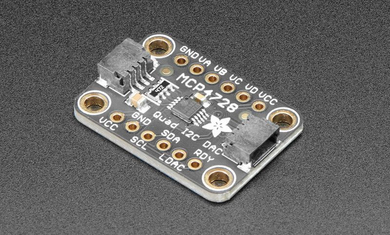 Adafruit MCP4728 I2C Quad DAC is a four-channel digital-to-analog converter that provides high-precision 12-bit output voltages. It is ideal for controlling analog signals, generators, test systems, and many other applications.