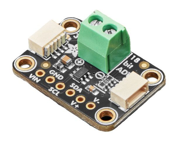 Adafruit MCP3421 - 18-bit ADC breakout with I2C interface. Supports 240 SPS and adjustable gain, differential inputs and a built-in precise low-drift reference voltage. STEMMA QT connectors make it easy to connect without soldering; includes a small header for breadboard use.