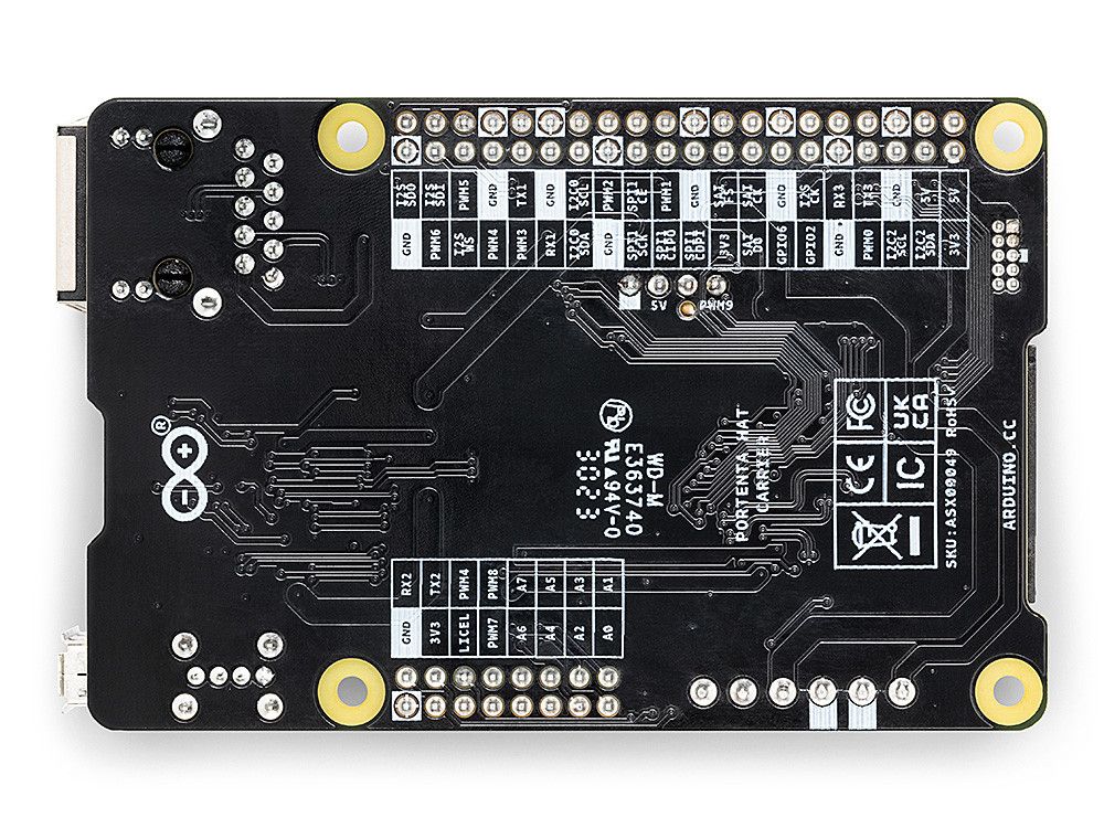 The original Arduino® ASX00049 is an expansion board in the familiar Raspberry Pi form factor for Arduino Portenta C33, H7, X8 development boards.