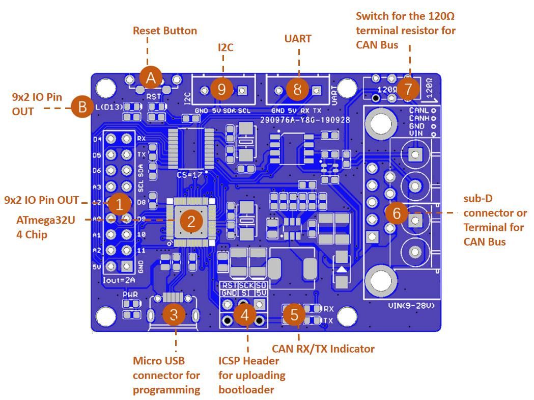 CANBed - Arduino CAN-Bus ATmega32U4 devboard