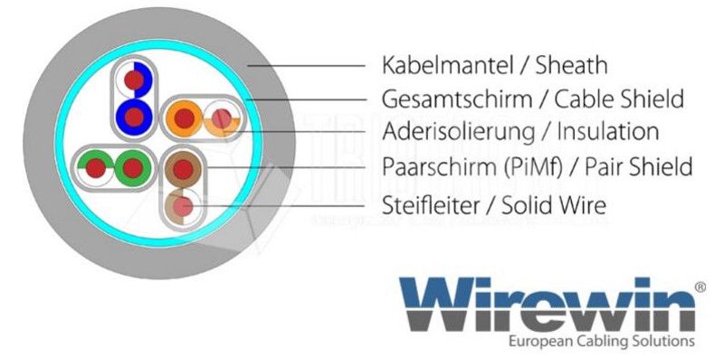 - Fully shielded construction S/FTP 4x2x AWG26/7 (100% copper)
