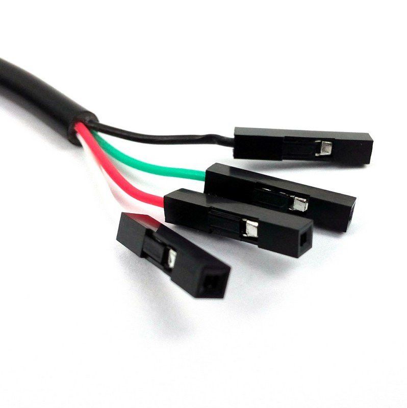 The cable is the easiest way ever to connect to your microcontroller/WiFi router serial console port. Inside the big USB plug is the CH340 USB <-> Serial conversion chip and at the end of the 1-meter cable are four-wire: