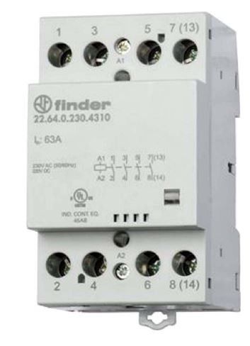 - Click for more details https://www.findernet.com/en/worldwide/series/22-series-modular-contactors-25-40-63a/type/type-2264-modular-contactor/