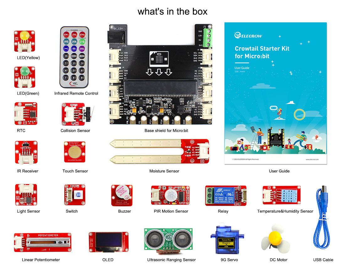Various Crowtail modules with different functions, plug and play, no troublesome soldering or complicated wiring.