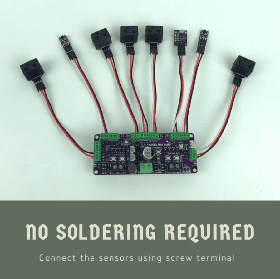 Wanna take part in Sumo robot competition but don't want to get your hand dirty dealing with electronics? Maker Mini Sumo Controller is the ultimate board for you - No matter you are a beginner who just starts learning about Sumo robot, or you are professional robot builder who participates in international Sumo robot competition.