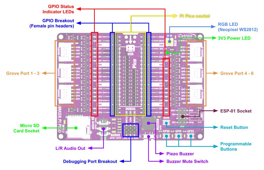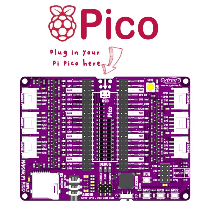 - Click for more details https://www.cytron.io/p-maker-pi-pico-base