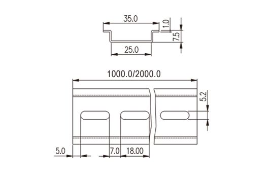 Dinkle TS-35N-1000, DIN Rail, steel, 1000mm length, 35mm wide