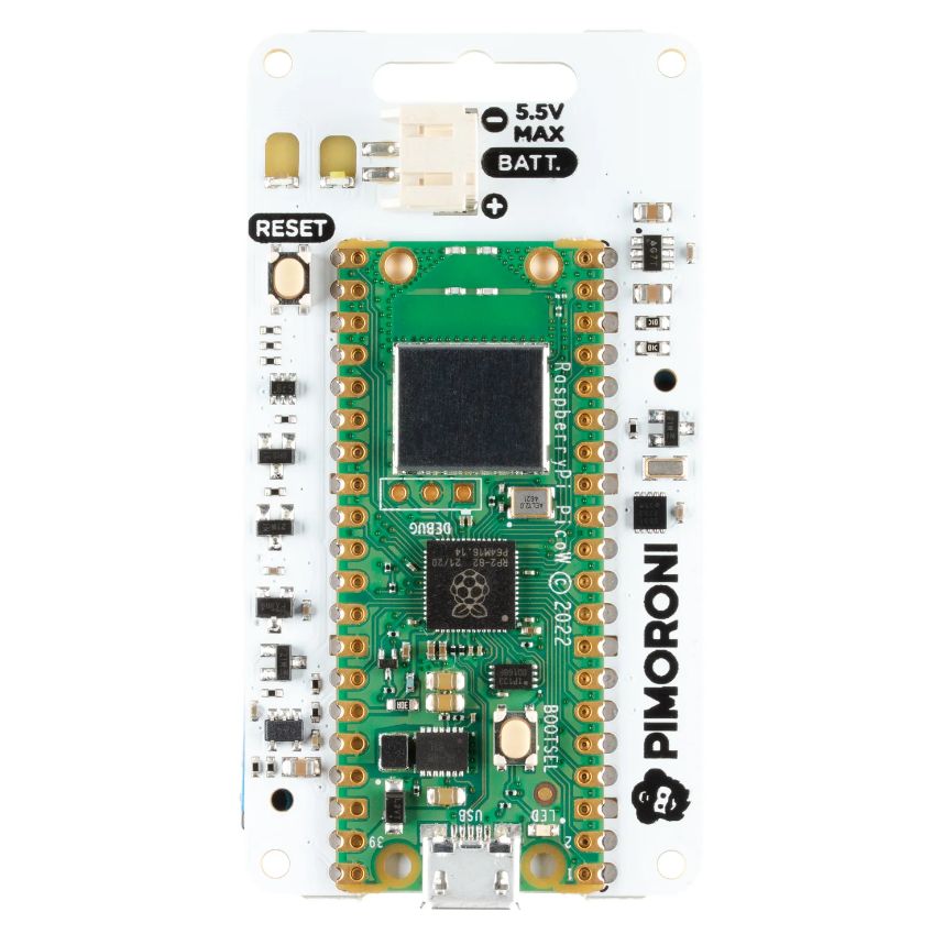 Pimoronin uusissa Pico W Aboard -tuotteissa on sisäänrakennettu Raspberry Pi Pico W. Tämä tarkoittaa, että saat kaikki RP2040-mikrokontrollerin edut - nopean ja nopean kaksiytimisen ARM-prosessorin, dynaamisen, kasvavan ekosysteemin ja valikoiman erilaisia ohjelmointitapoja, joita voit kokeilla. Mikä jännittävintä, Pico W:ssä on langaton yhteys, joten Pico/RP2040-laitteesi voivat kommunikoida keskenään ja internetin kanssa!