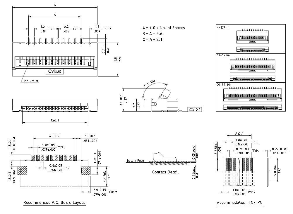- Product path Home Elgood representationsCviluxCvilux CF FFC connectors & cables FFC 1,0mm 20pole smd bottom ZIF Sn tube