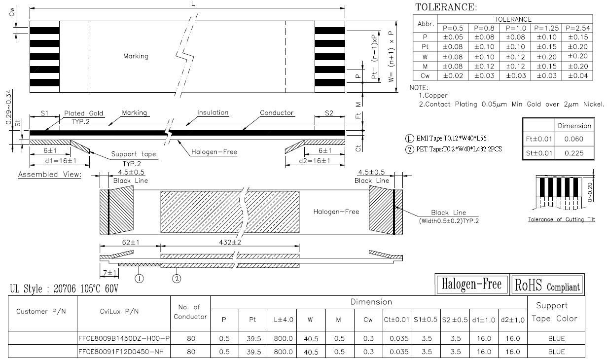 - Product path Home CablesRaw CablesData Transfer Raw CablesFFC Cables FFC cable 0,5mm 80pole 800mm Au 55mm EMI shield