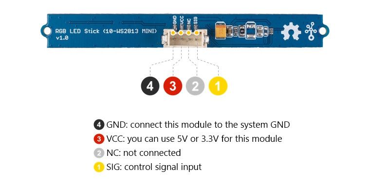- Click for more details https://www.seeedstudio.com/Grove-RGB-LED-Stick-10-WS2813-Mini.html