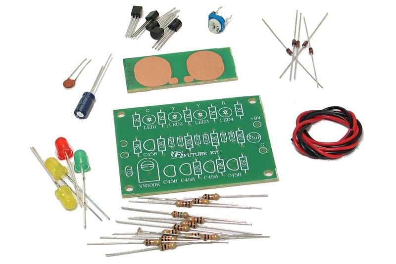 When a person consciously lies, the electrical conductivity of their skin changes (or maybe not). This change is measured and indicated by LEDs at the ends of utterances. A trimmer selects the output sensitivity. Runs on a single 9V snap battery.