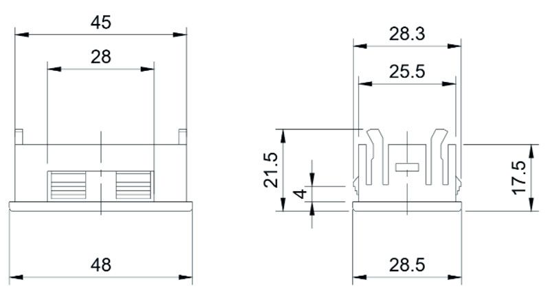 - Dimensions 48 x 28 x 22 mm