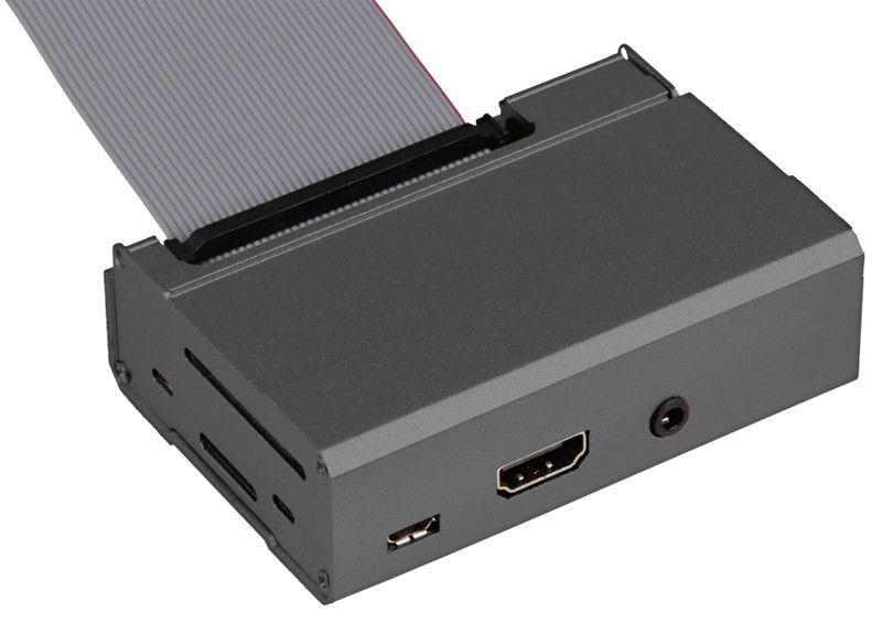 Joy-IT rb-ALUcase+03B - dark gray anodized aluminum case for Raspberry Pi 3 compatible single-board computers. Access to the GPIO port under a removable cover.