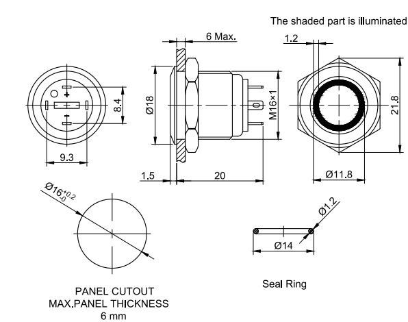 MOMENTARY SWITCH WITH WHITE BACKLIGHT Ø16mm