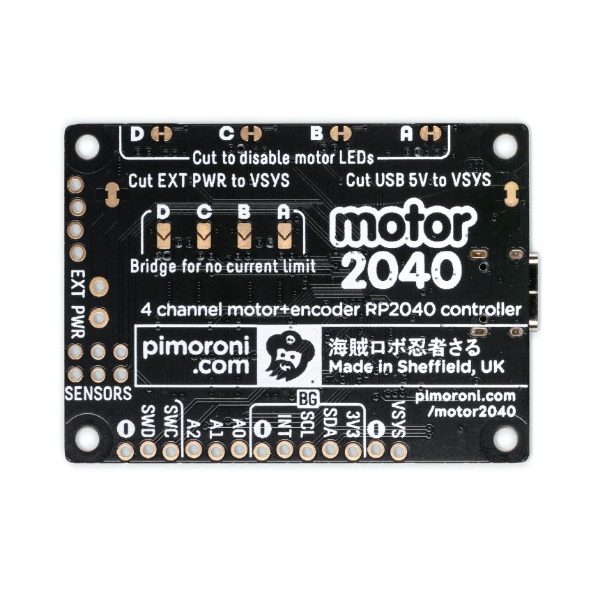 Pimoroni PIM618 - Compact RP2040-based 4-channel motor+encoder controller.