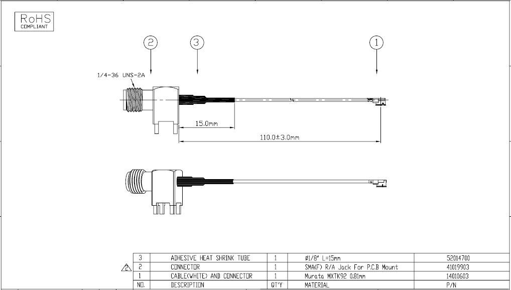 Murata MXTK92 - SMA(F) R/A Jack, L-110mm