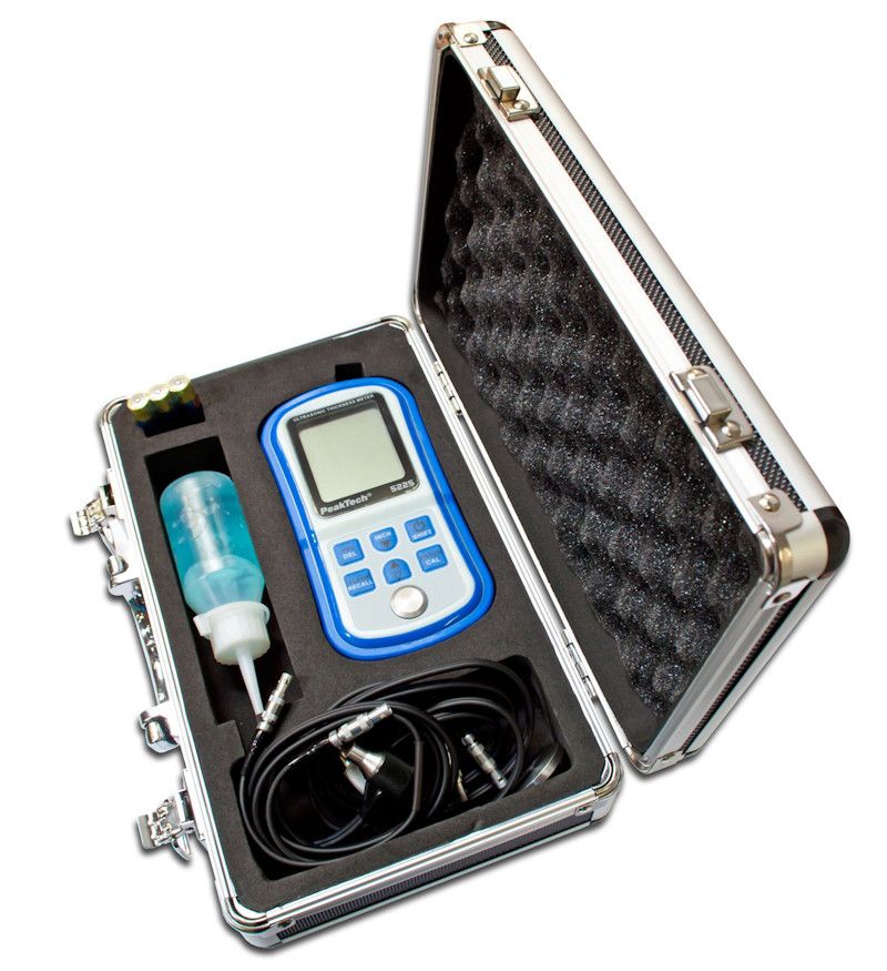 - Click for more details https://www.peaktech.de/uk/PeakTech-P-5225-Ultrasonic-Coating-Material-Thickness-Meter/P-5225