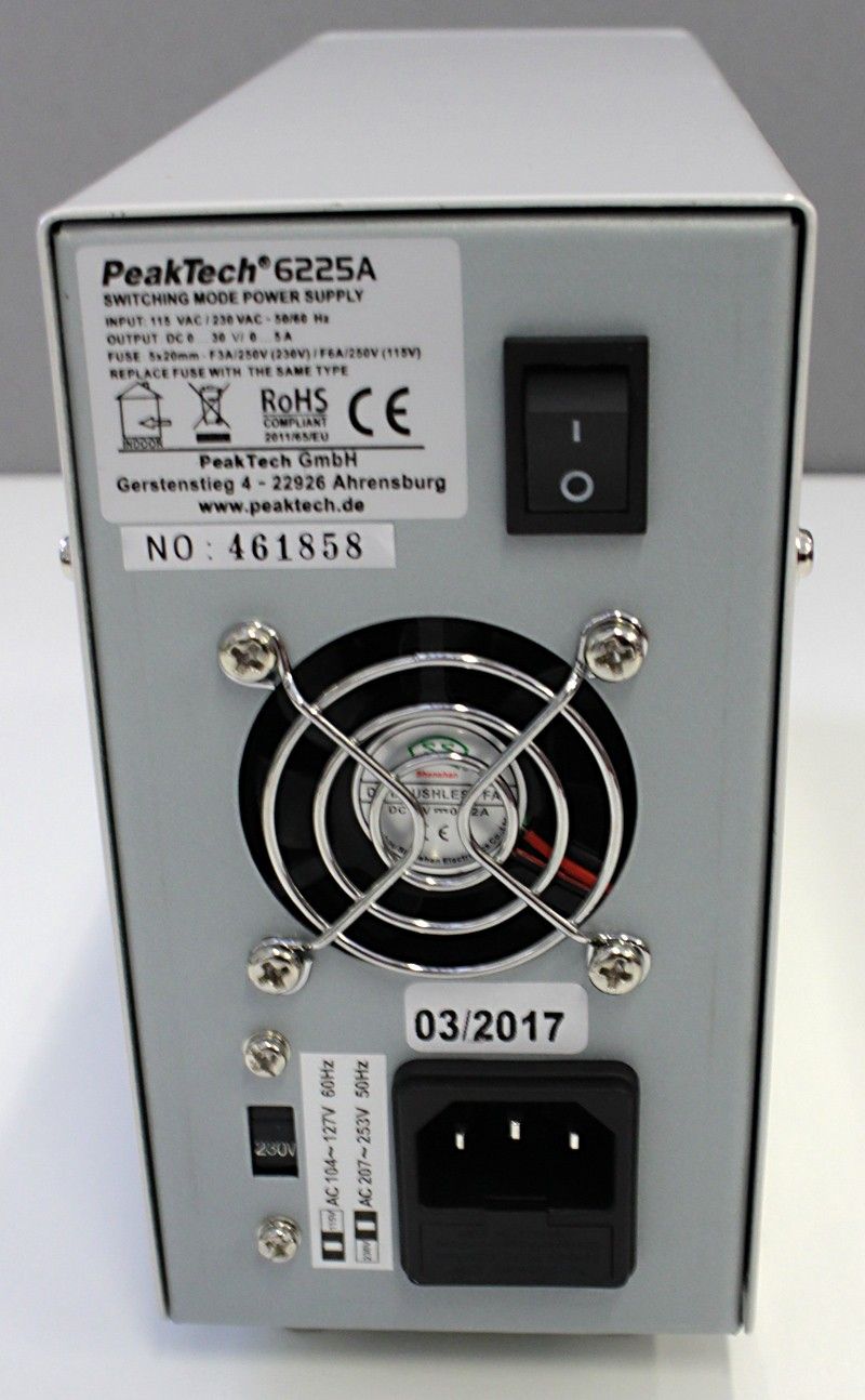 - Click for more details https://www.peaktech.de/uk/PeakTech-P-6225-A-Digital-Power-Supply-DC-0-30-V-0-5-A/P-6225-A