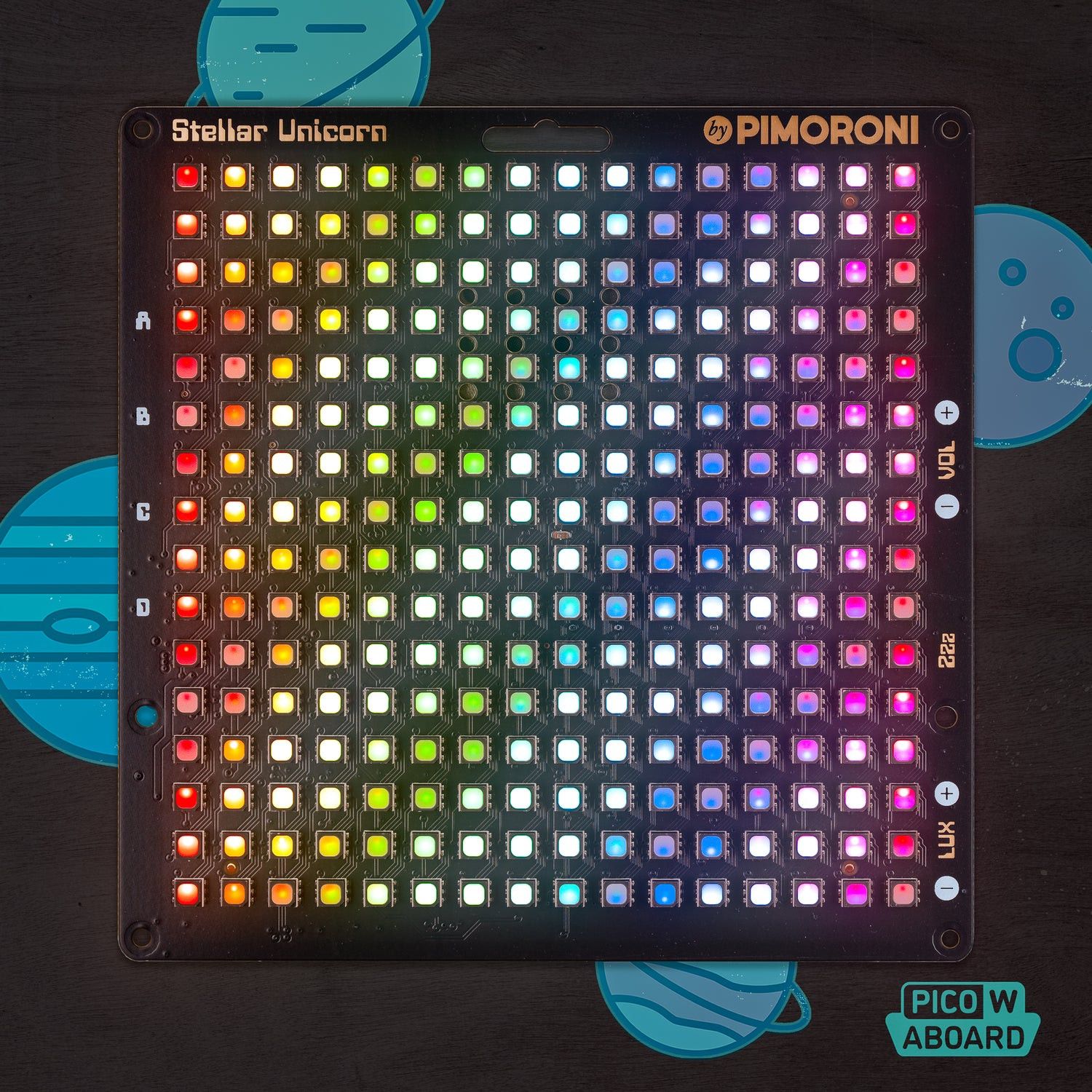 Pimoronin avaruuden yksisarviset ovat erittäin kauniita, kaikki yhdessä, RP2040-käyttöisiä LED-matriiseja, jotka sopivat erinomaisesti tiedon välittämiseen upeasti (tai työpöydän, makingspacen tai imaginariumin kaunistamiseen). Mukana on tonneittain ominaisuuksia, tässä muutamia suosikkejamme!