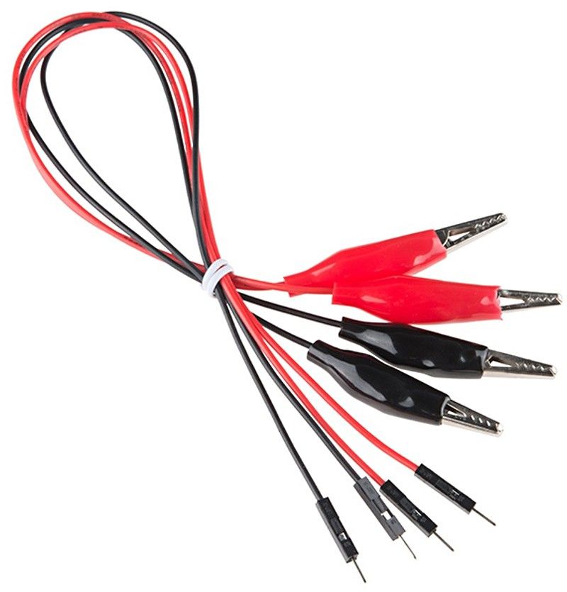 - Product path Home Development CardsModulesSparkfun Alligator Clip with Pigtail 4 Pack