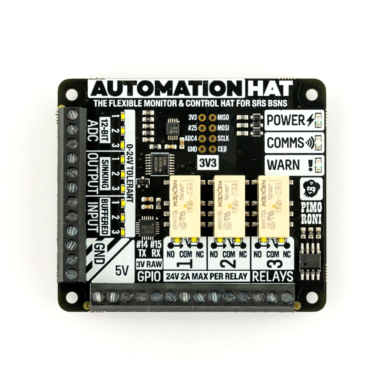 - Click for more details https://shop.pimoroni.com/products/automation-hat