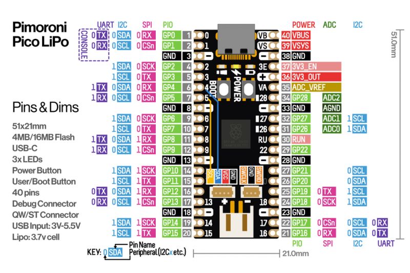 Pimoroni PIM560 - High-end Pirate-branded RP2040-based microcontroller board with lots of flash memory, USB-C, STEMMA QT/Qwiic and debug connectors... and built-in LiPo charging!
