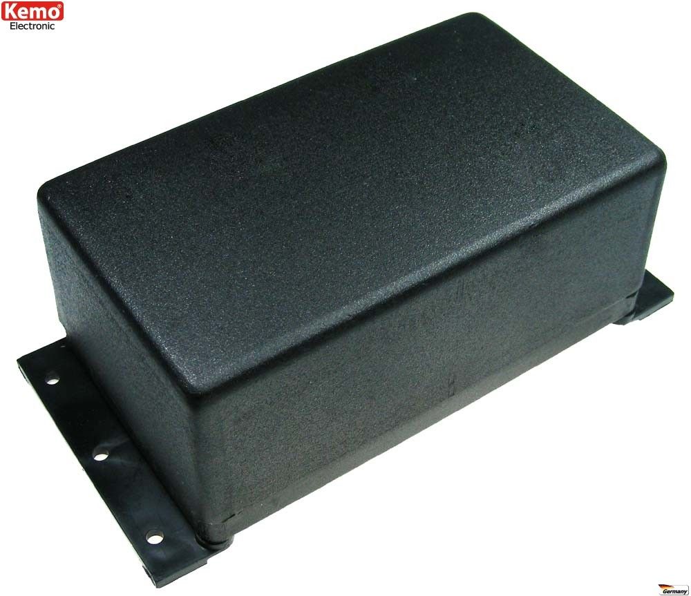 Kemo G086 - black plastic enclosure 120 x 70 x 50 mm. Includes mounting flanges for wall mounting.