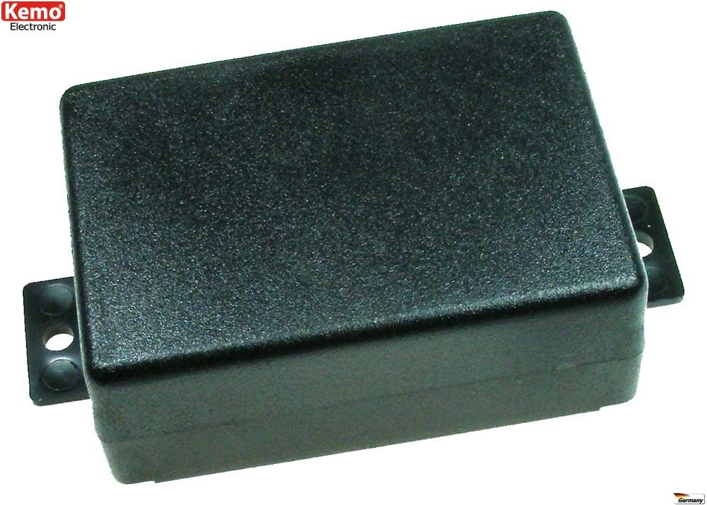 Kemo G023N - black plastic enclosure with wall mounting flanges 74 x 51 x 28 mm.