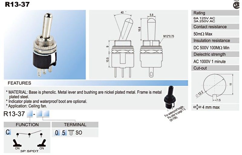 - Product path Home ComponentsElectromechanical ComponentsSwitchesToggle Switches POWER TOGGLE SWITCH SPDT ON/ON