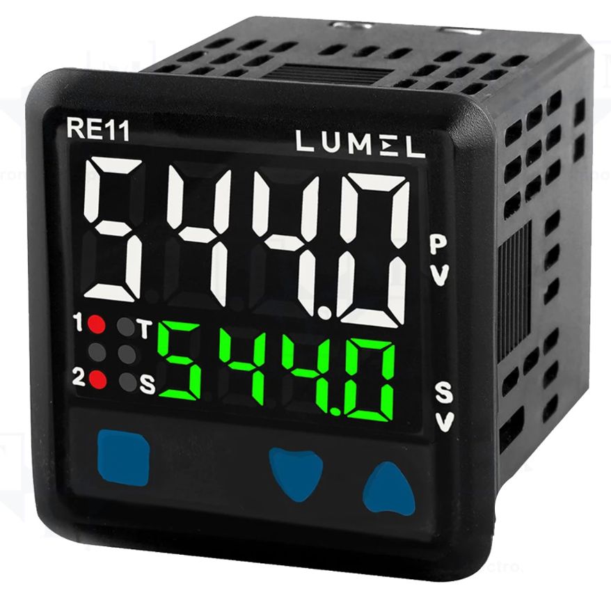 LUMEL RE11 is a general-purpose and versatile temperature controller with 2 relay outputs, a bright LED dual display and user-friendly configuration.