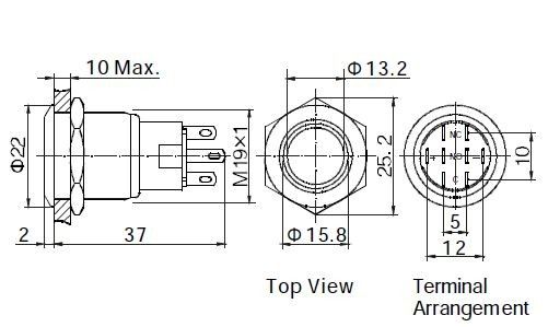 - Indicator light voltage: 12VDC