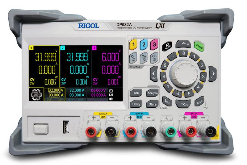 Rigol DP932A - three-channel high-resolution programmable linear laboratory power supply with adjustable 1-CH/2-CH 0-32V/3A and 0-6V/3A.
