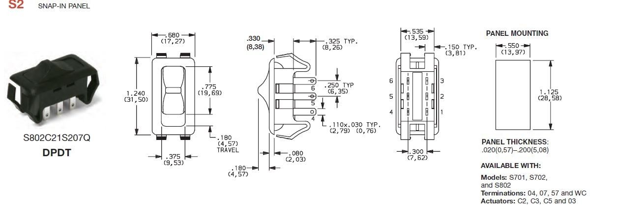 SLIDE SWITCH ON/ON SNAP-IN