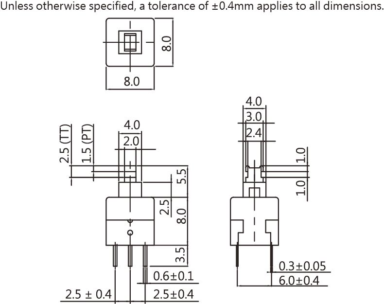 - 2,54mm inch grid => suitable as a button, e.g. for a breadboard