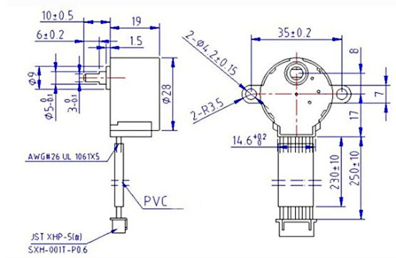 - drive type: unipolar, 5-lead approx. 23cm, mating connector XHS-5