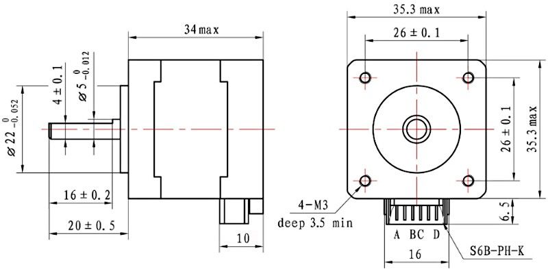 Joy-IT NEMA14-02 - 35SHD0102-20B1 is a bipolar stepper motor in the NEMA14 size. Ø 5 x 16 mm shaft with a 4.0 mm chamfer. Body 35 x 34 mm.