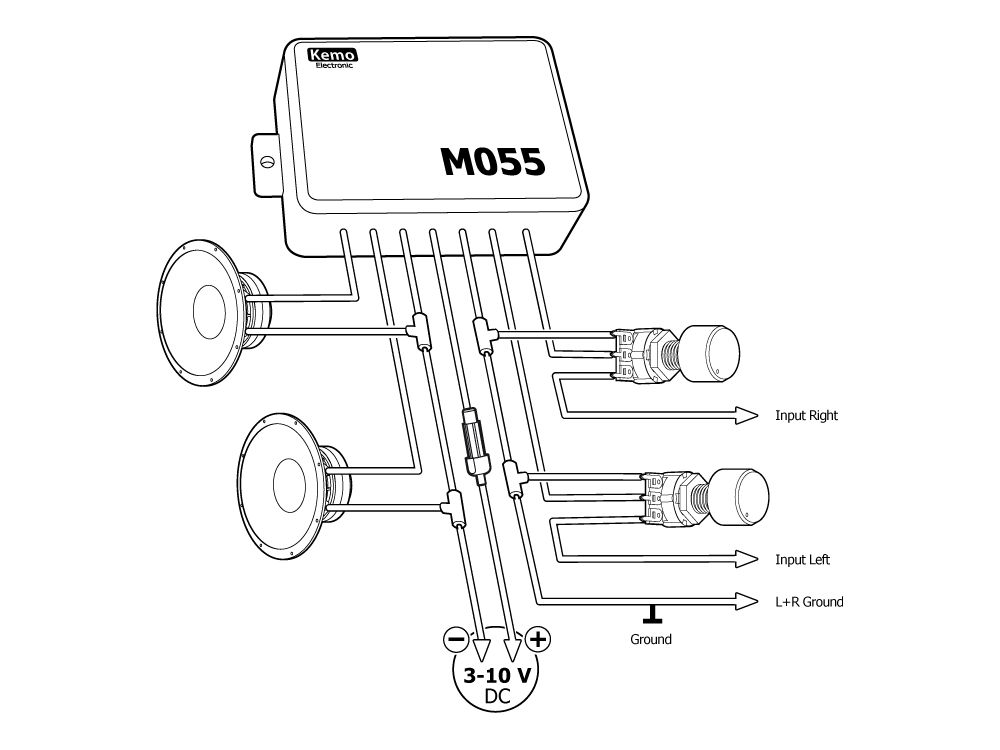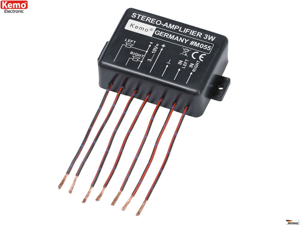 - Click for more details https://www.kemo-electronic.de/en/Light-Sound/Amplifier-Splitter/Modules/M055-Stereo-amplifier-3-W.php