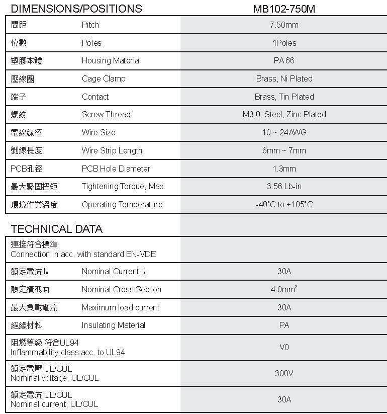 - Product path Home ConnectorsTerminal BlocksFixed terminal blocks Terminal Block 1x 2-wire clamp 7,5mm 30A