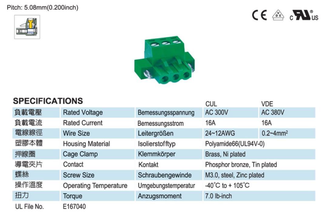 - Product path Home ConnectorsTerminal BlocksDetachable terminal blocks TERMINAL BLOCK 2x R5,08 for wire + fixing screws