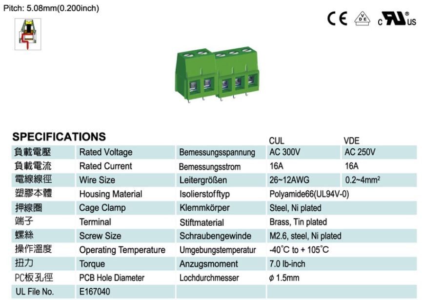 - Product path Home ConnectorsTerminal BlocksFixed terminal blocks TERMINAL BLOCK 3X 14mm R5,08