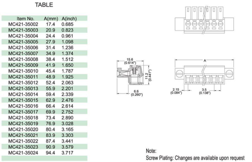 - Product path Home ConnectorsTerminal BlocksDetachable terminal blocks TERMINAL BLOCK 6x R3,50 wire female ST