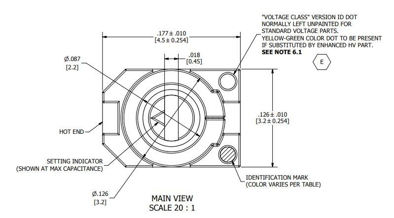 - nominal capacitance: 8,5 - 40 pF +50%/-0%